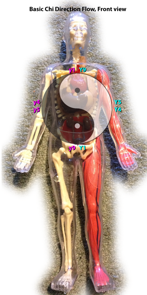 TCM Chi Flow Side ViewIn reverse direction, cooling occurs. This can be done naturally, as when the body gets ready for sleep, or deliberately, as a meditative exercise. |